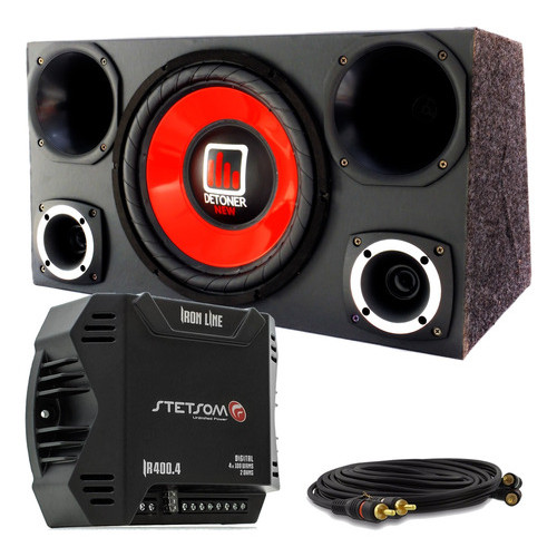 Caixa Trio Som Carro 12 Pol Detoner New + Módulo Stetsom