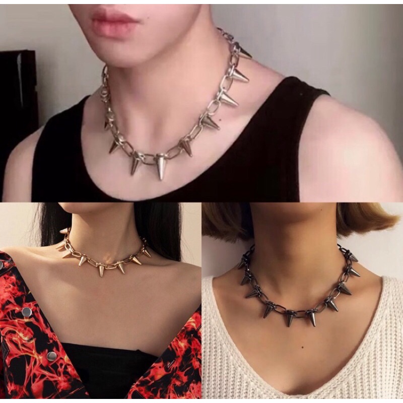 Choker Couro Legítimo Coleira Gargantilha Colar Corrente Chain Gótico Punk Rock Moda Alternativa Estilo Dark Fashion Feminina Masculina Spike Trevosa Haloween Harajuku Acessórios Moda emo Gothic egilr kawaii