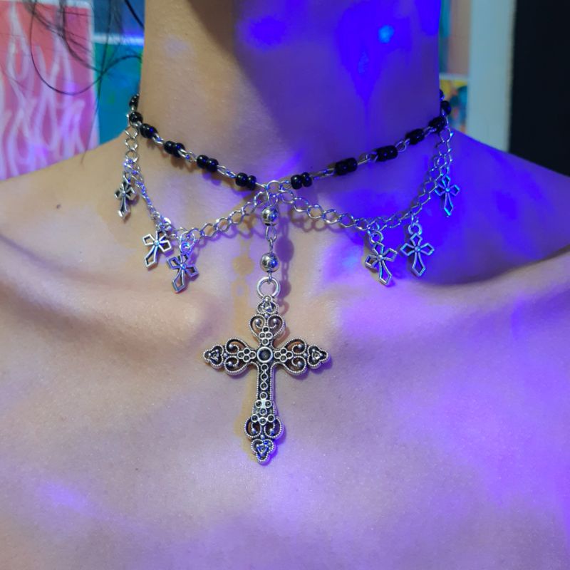 Choker / Gótico / Punk Rock / Egirl / Soft / Y2k / Aesthetic / Acessórios / Alternativos / Goth Dark / Gargantilha Regulável / Ghotic / Kpop / Cosplay / Lolita Kawaii / Corrente / Coleira / Pingente Cruz Feminino / Geek / Grunge / Cottagecore