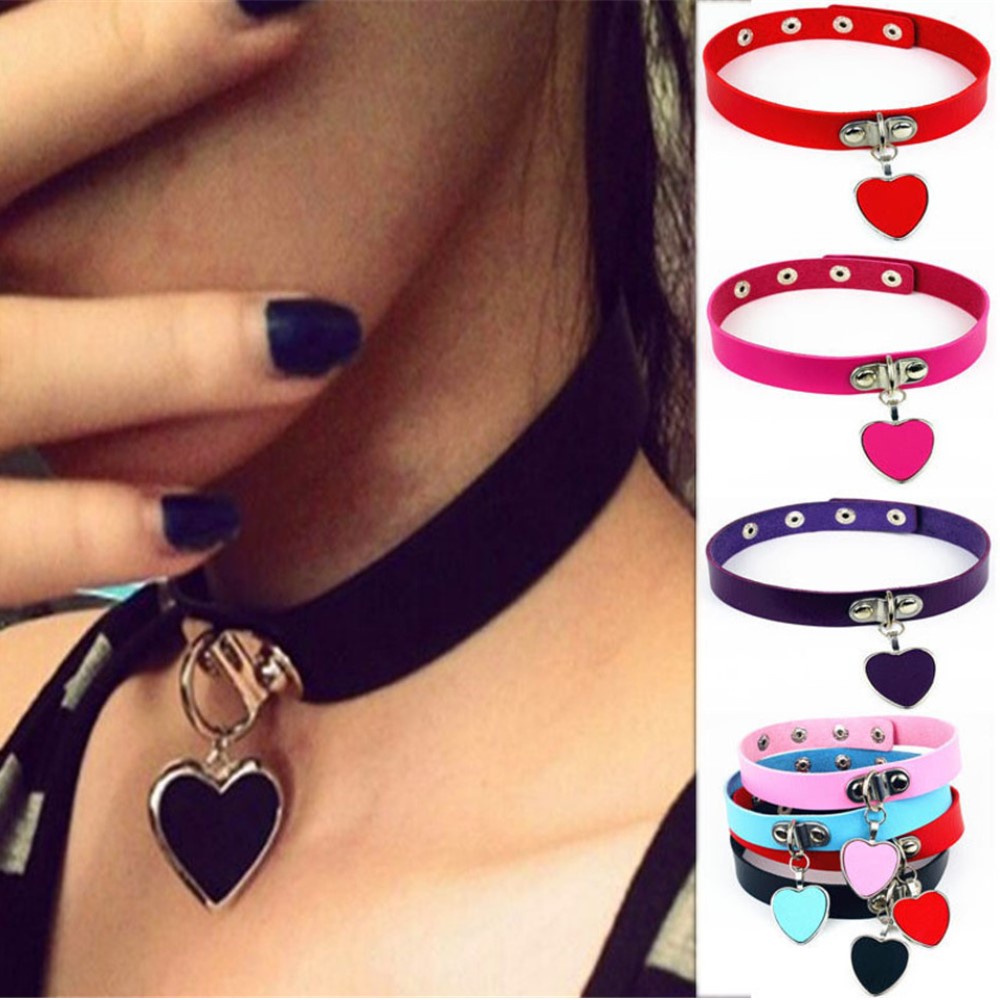 Gargantilha De Couro Com Pingente Coração Choker