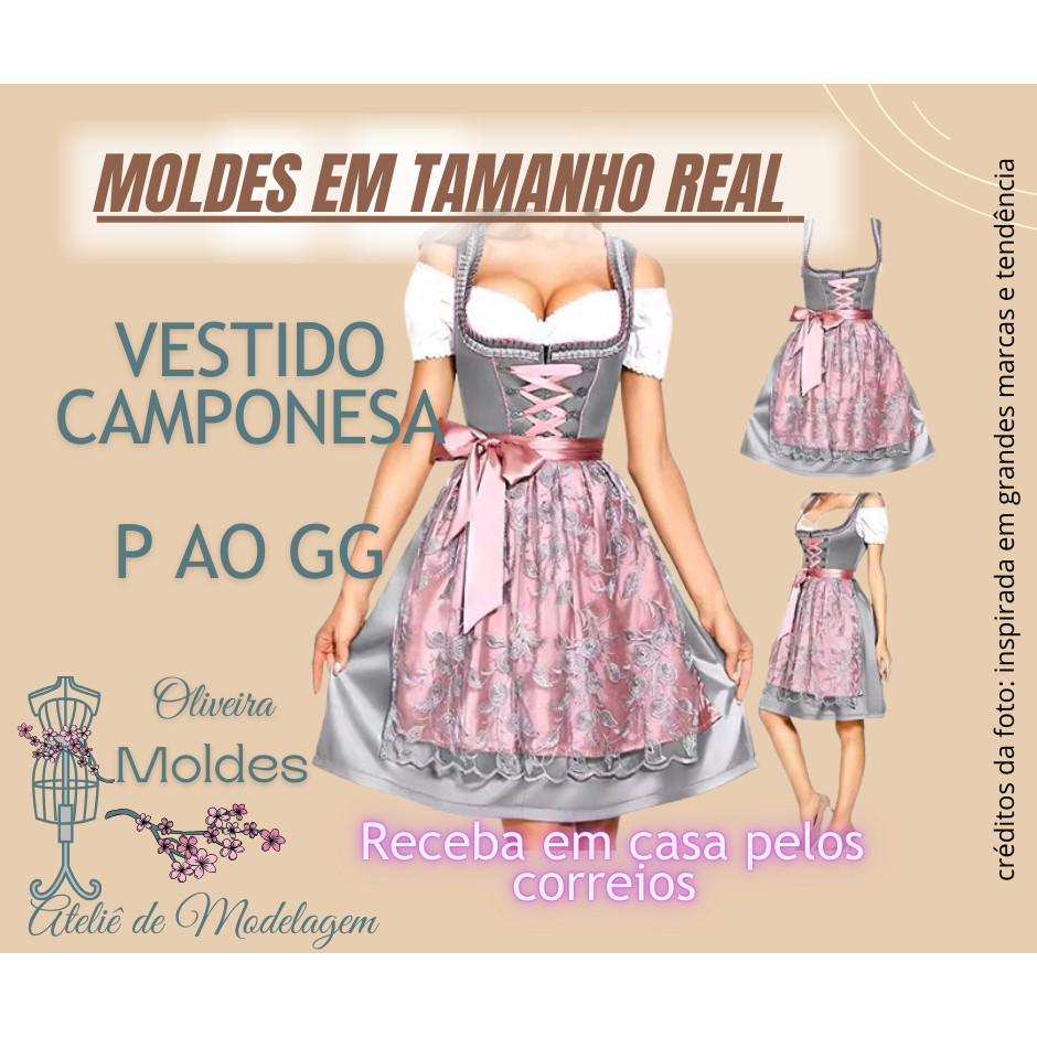 MOLDE VESTIDO CAMPONESA, IMPRESSO EM TAMANHO REAL P AO GG, EM PAPEL 75g