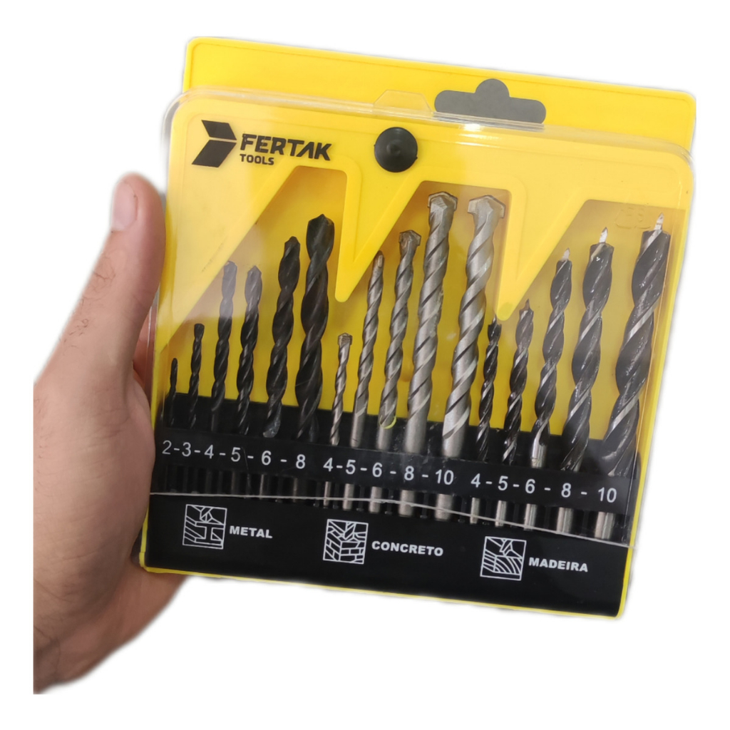 Ki Jogo 16 Brocas Com Estojo Concreto Aço Ferro Madeira Resistente Furadeira Parafusadeira