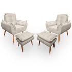 Kit 2 Poltrona Opala com Puff Opala para Sala e Quarto Suede Bege