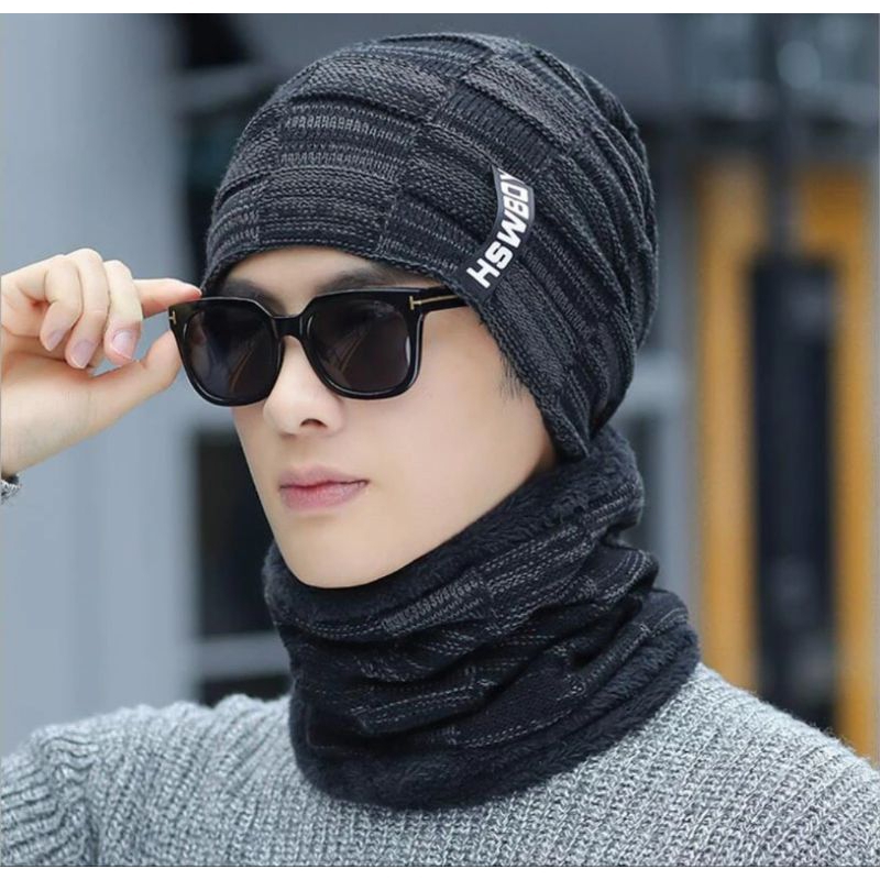 Gorro Unissex Boné Touca Balaclava Com Cachecol Gola Inverno Chapéu de Lã