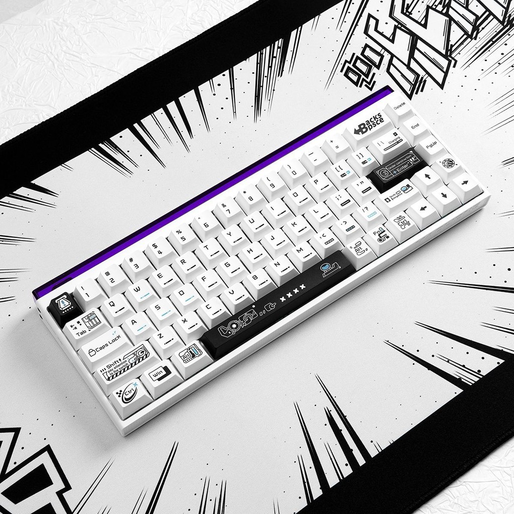136 teclas, perfil cereja brilhante, keycap PBT de dupla impressão, compatível com a maioria dos layouts ANSI de teclado