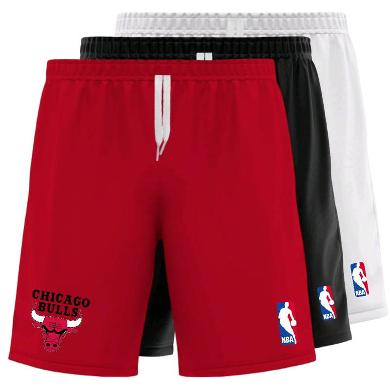 Kit 3 Bermudas Shorts N.B.A Basquete Chicago B. Dry Fit Treino Masculino Crossfit Bolsos