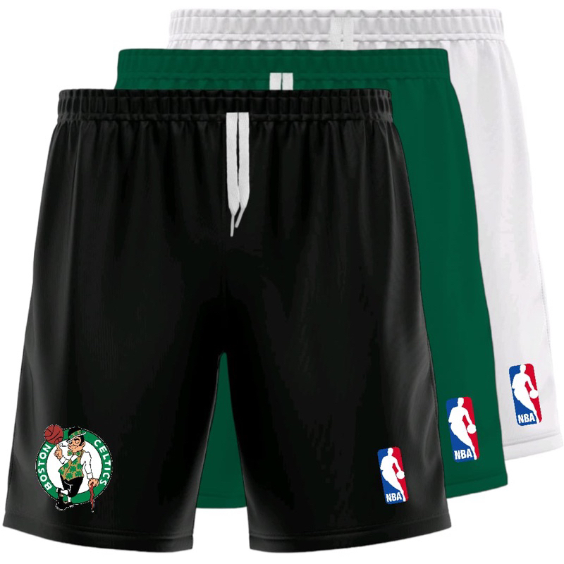 Kit 3 Bermudas Shorts N.B.A Basquete Boston Celtics Dry Fit Treino Masculino Crossfit Bolsos