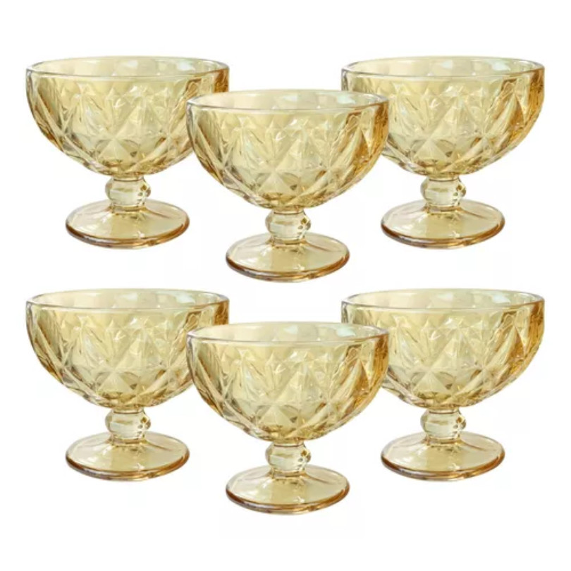 Jogo 6 Taças De Vidro Ambar Sobremesa Diamante Sorvete Açai Luxo 400ml