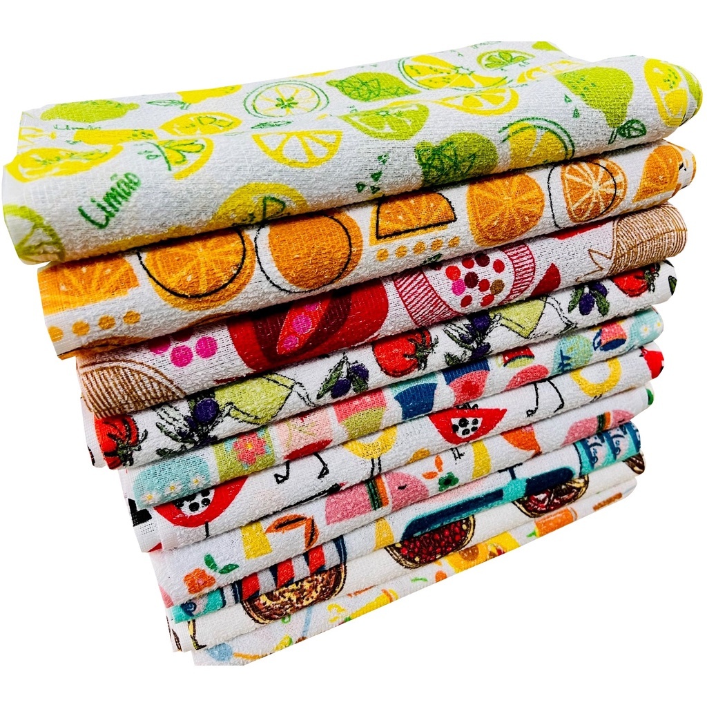 Pano De Copa kit 10 Toalha Prato Felpudo/Atoalhado - Jacquard - 100% Algodão - 45x70cm