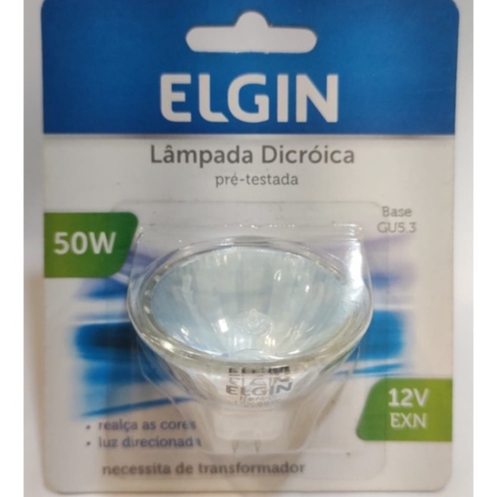 Lâmpada Dicróica Halógena 50w 12v base GU5,3 - MR16 ELGIN BIPINO