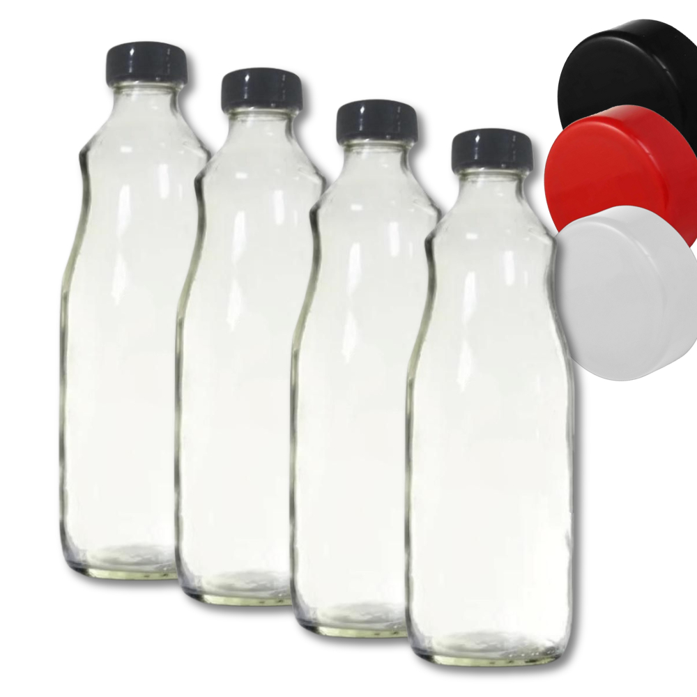 Kit 4 Garrafas De Vidro 1 Litro Para Leite Água Suco Com Tampa Plástica Leiteira Oferta Promoção
