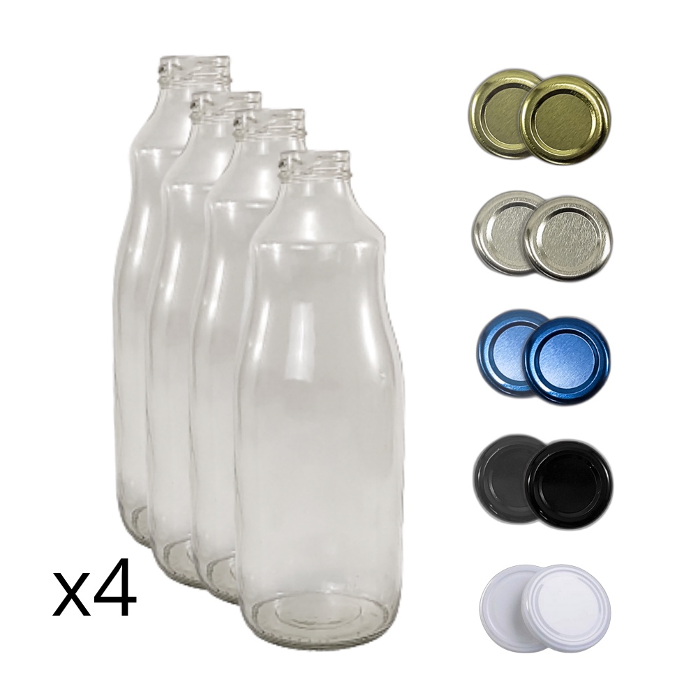 Kit 4 Garrafa De Vidro 1 Litro Leite Suco Tampa Alumínio