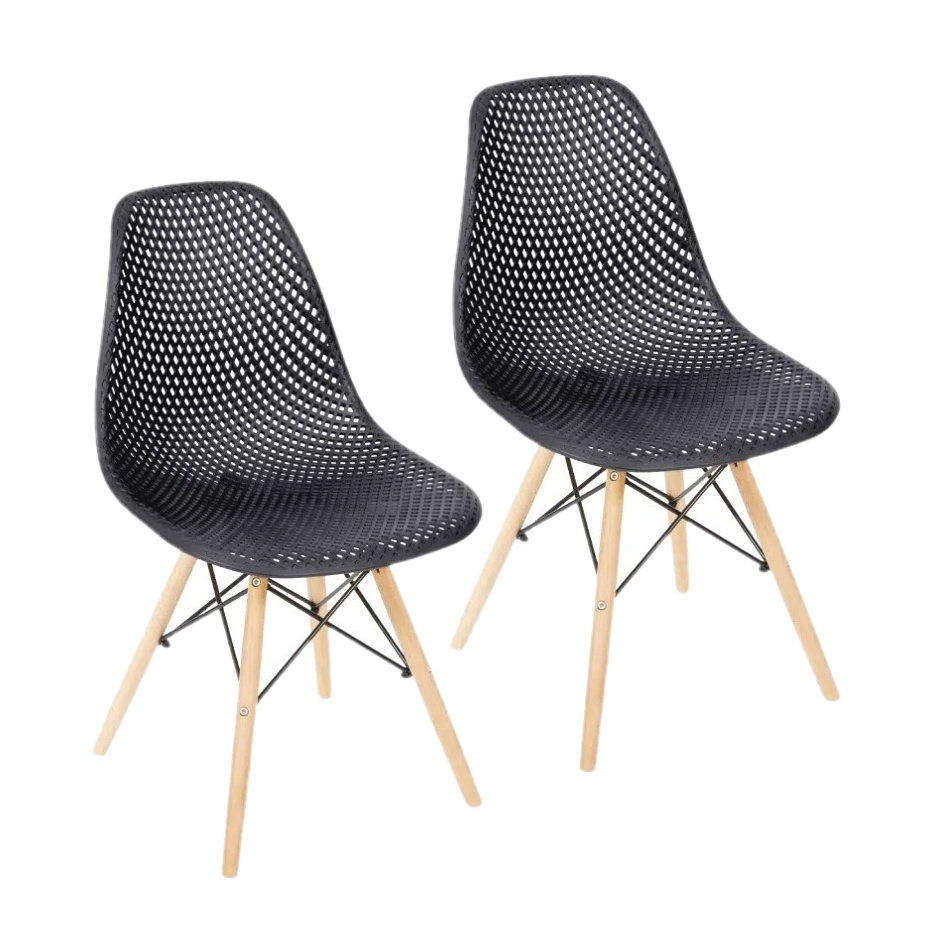 Kit 2 Cadeiras Charles Eames Colmeia Furadinha Eiffel Base Madeira
