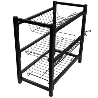 Escorredor De Louça Grande Triplo 3 Andares Preto Fosco 11 Pratos porta Copos/Talher