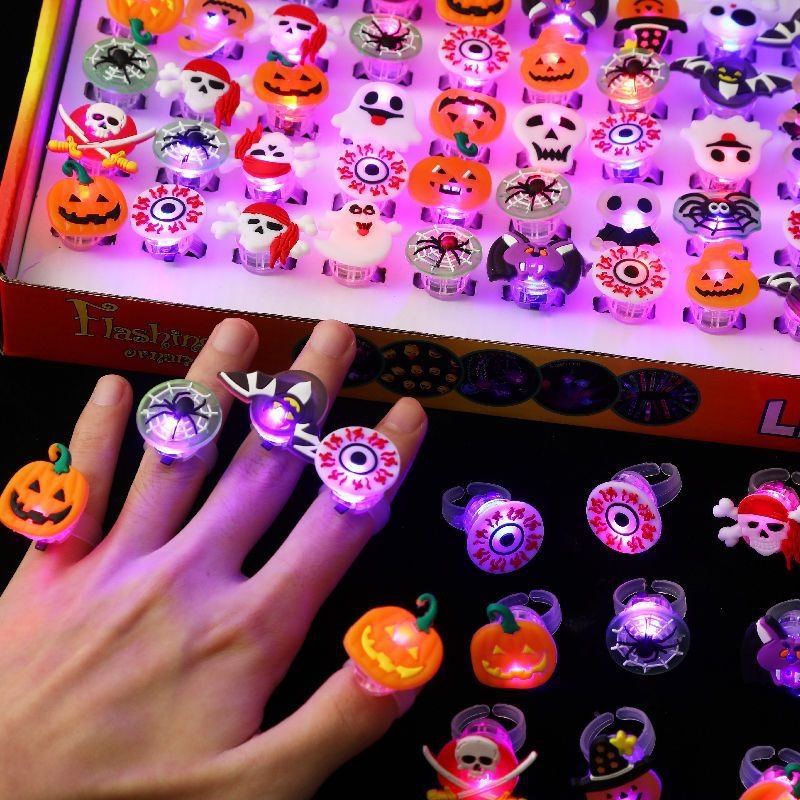 10Pcs Halloween Conjunto De Ring Light Anel De Luz LED Fantasma De/Lâmpada De Dedo Abóbora Luminosa Criativa/Presente De Brinquedo Infantil De Festa Flash Caveira Terror