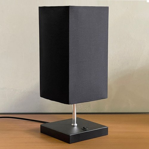 Abajur de Mesa Quadrado Preto com Interruptor com Cúpula para Sala, Quarto, Cabeceira Aba50599a