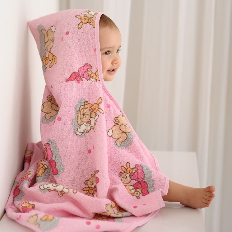 Toalha de banho bebe felpuda infantil com capuz com forro de fralda 100% algodão 70x90cm