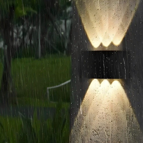 Arandela de Efeito Externa Interna Meia Lua LED 8W Sierra 8 Fachos Branco Quente 3000K Preta Bivolt | Luminária de Parede, Muro, Fachada