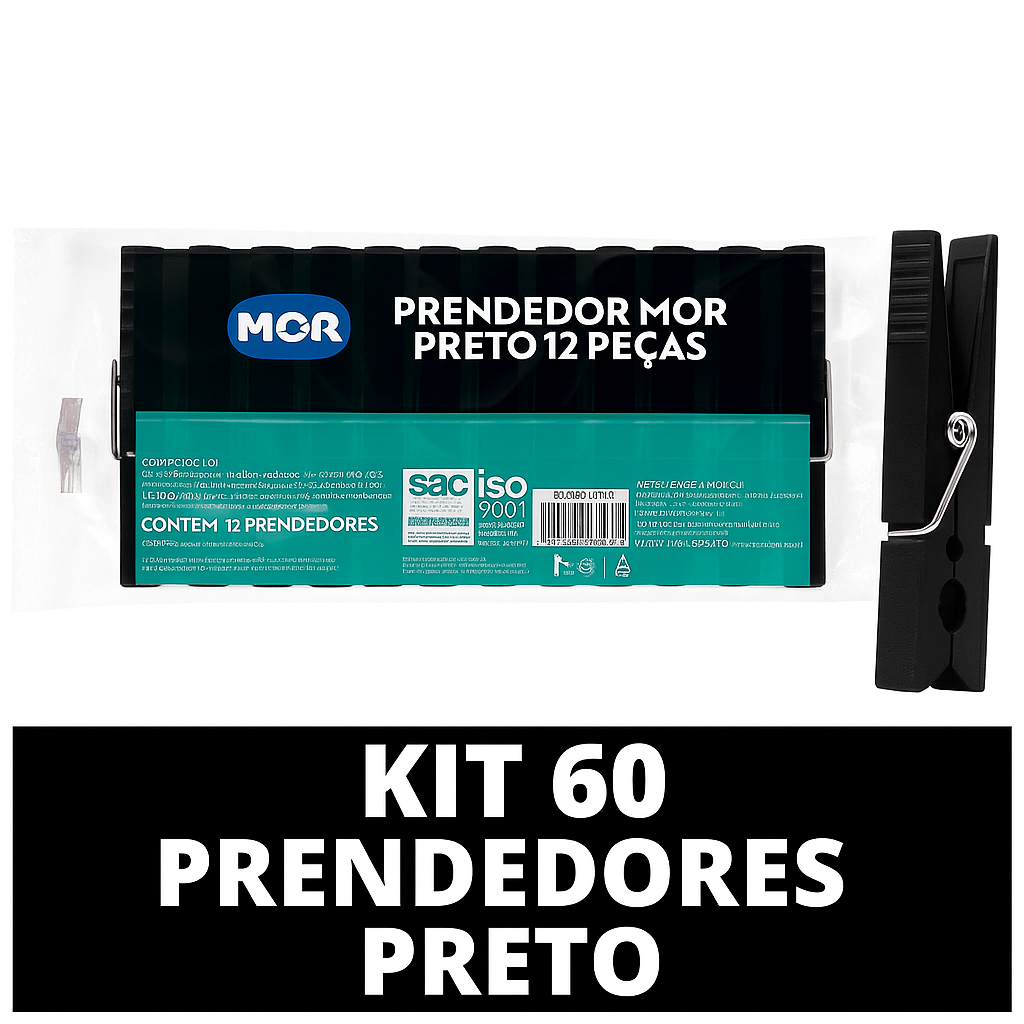 Kit Prendedores/ pregadores de roupas preto - com variações de 12 /24/36/48 e 60 prendedores - MOR