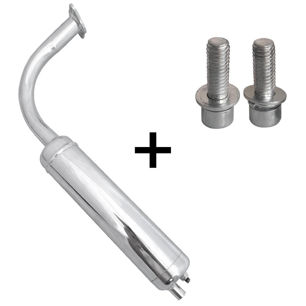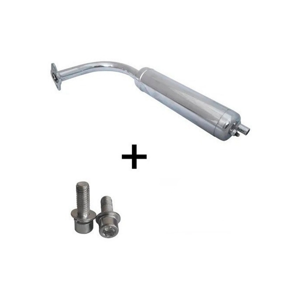 Escape Escapamento Prateado Cromado p/ Bike Motorizada 2T + Parafusos fixação