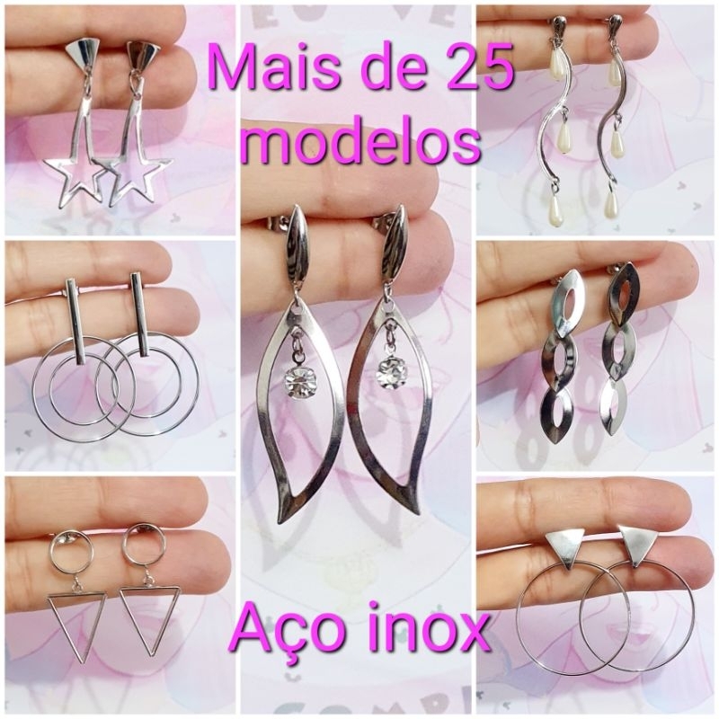 Brinco Estrela Gota Folha Flor Borboleta Clássico Camada aço inox cirúrgico anti alérgico Maxi Brinco strass pérola pedra