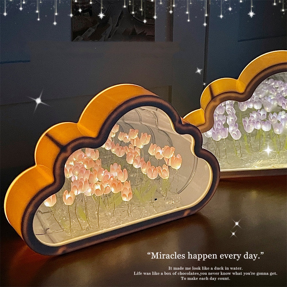 Nuvem De Bricolage Tulipa LED Luz Nocturna Quarto De Menina Ornamentos Fotográficos Criativos Moldura Espelho Lâmpadas De Mesa De Cabeceira Aniversário Feito À Mão