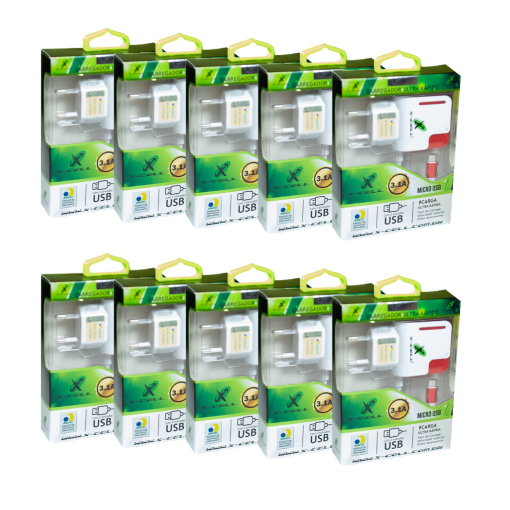 Kit com 10 un de carregador de celular ultra rápido v8 com entrada USB X-Cell mod. XC-V8/GLX
