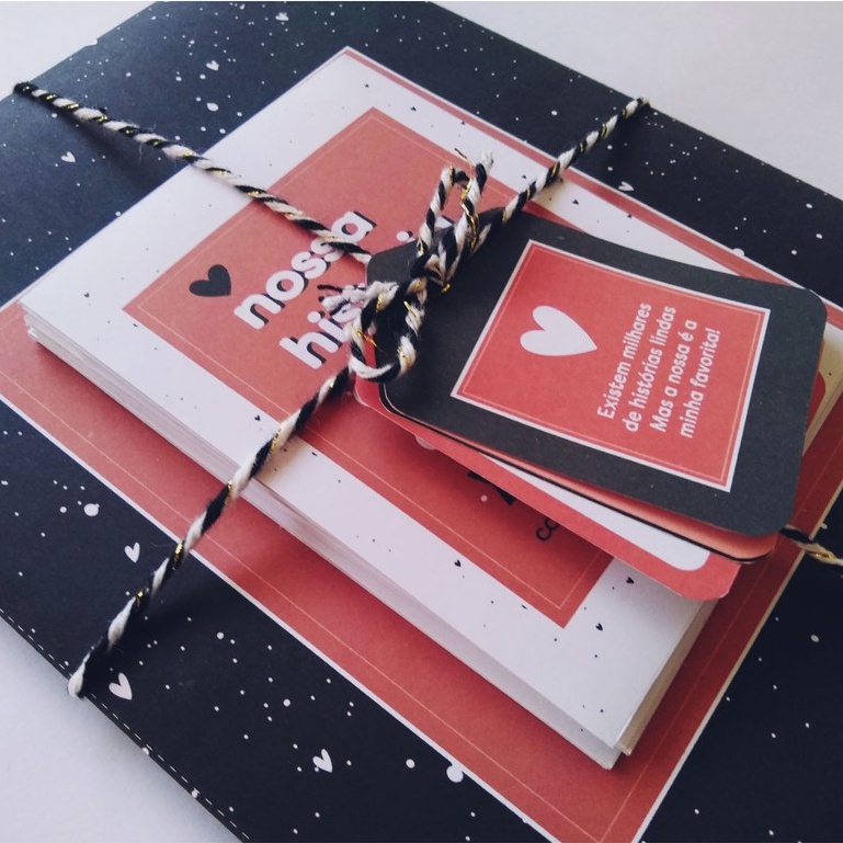 Caderno Álbum capa dura e miolo preto scrapbook presente dia dos namorados