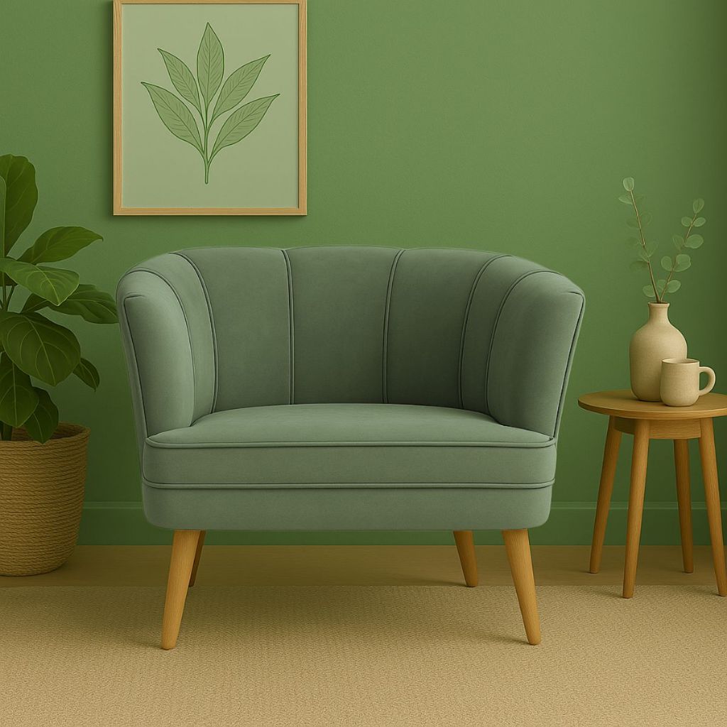 Poltrona Estofada para Recepção Clinica Pés de Madeira Reistente Tecido Veludo Confortável