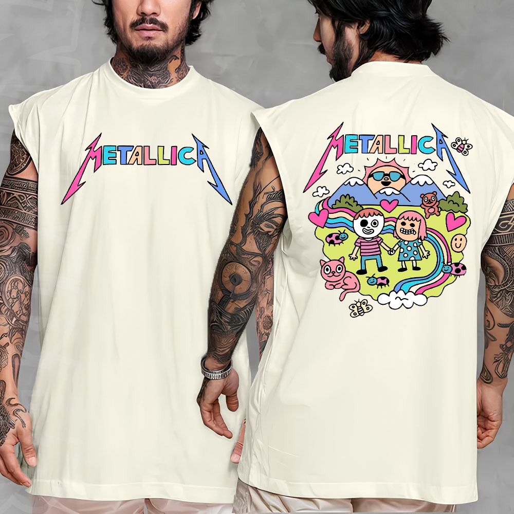 Camiseta regata machao oversized masculino banda de rock cartoon metalica Longline em algodao unissex