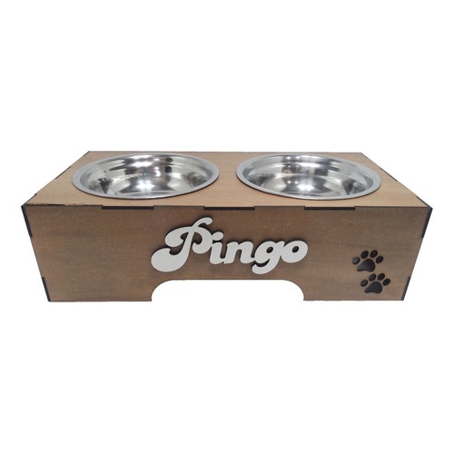 Comedouro Personalizado para Cão Cachorro e Gato Nome Pet Pote de Ração Pet Elevado mdf