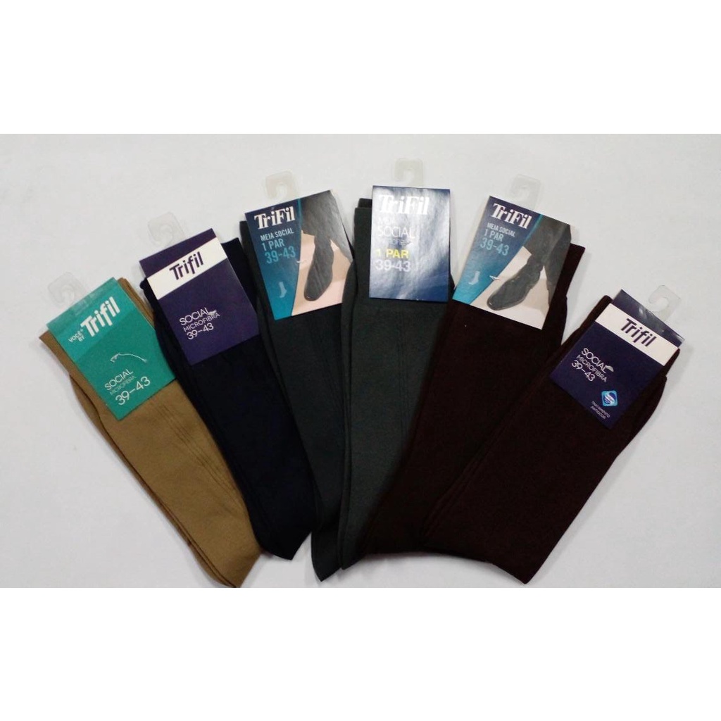 Kit com 3 Pares de Meia Social Cano Longo 39 ao 43 Trifil T07001 Preto/Marrom/Marinho