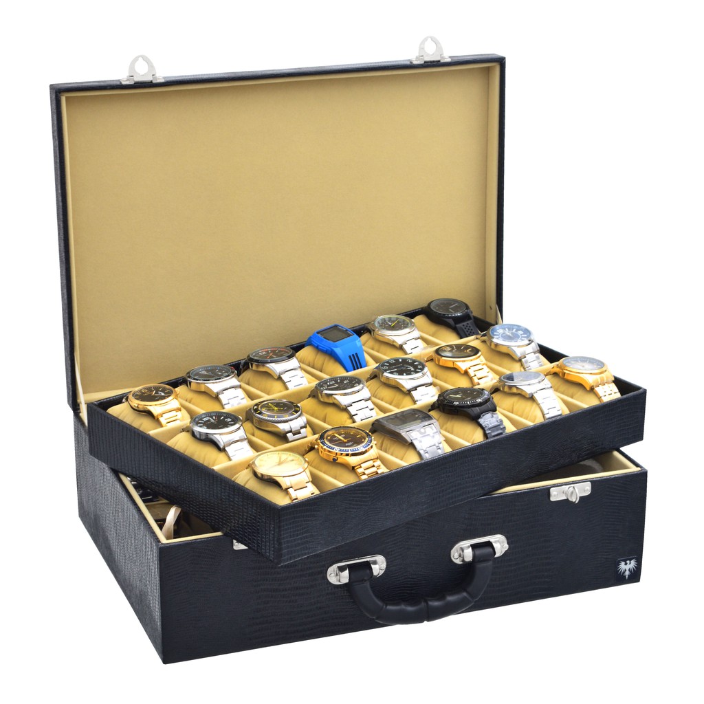 Porta Relógio Total Luxo Maleta Couro Ecológico 36 Nichos