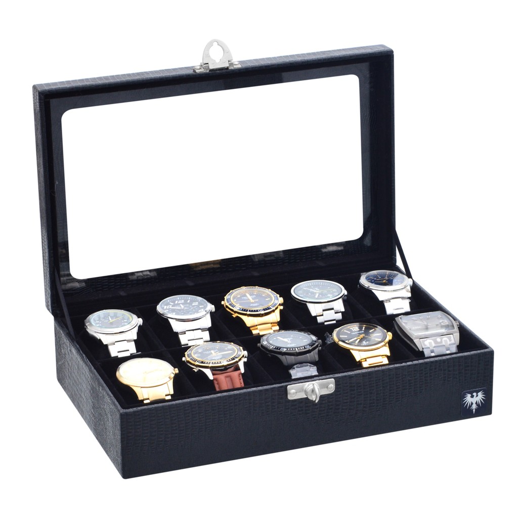 Porta Relógio Total Luxo Estojo Couro Ecológico 10 Nichos