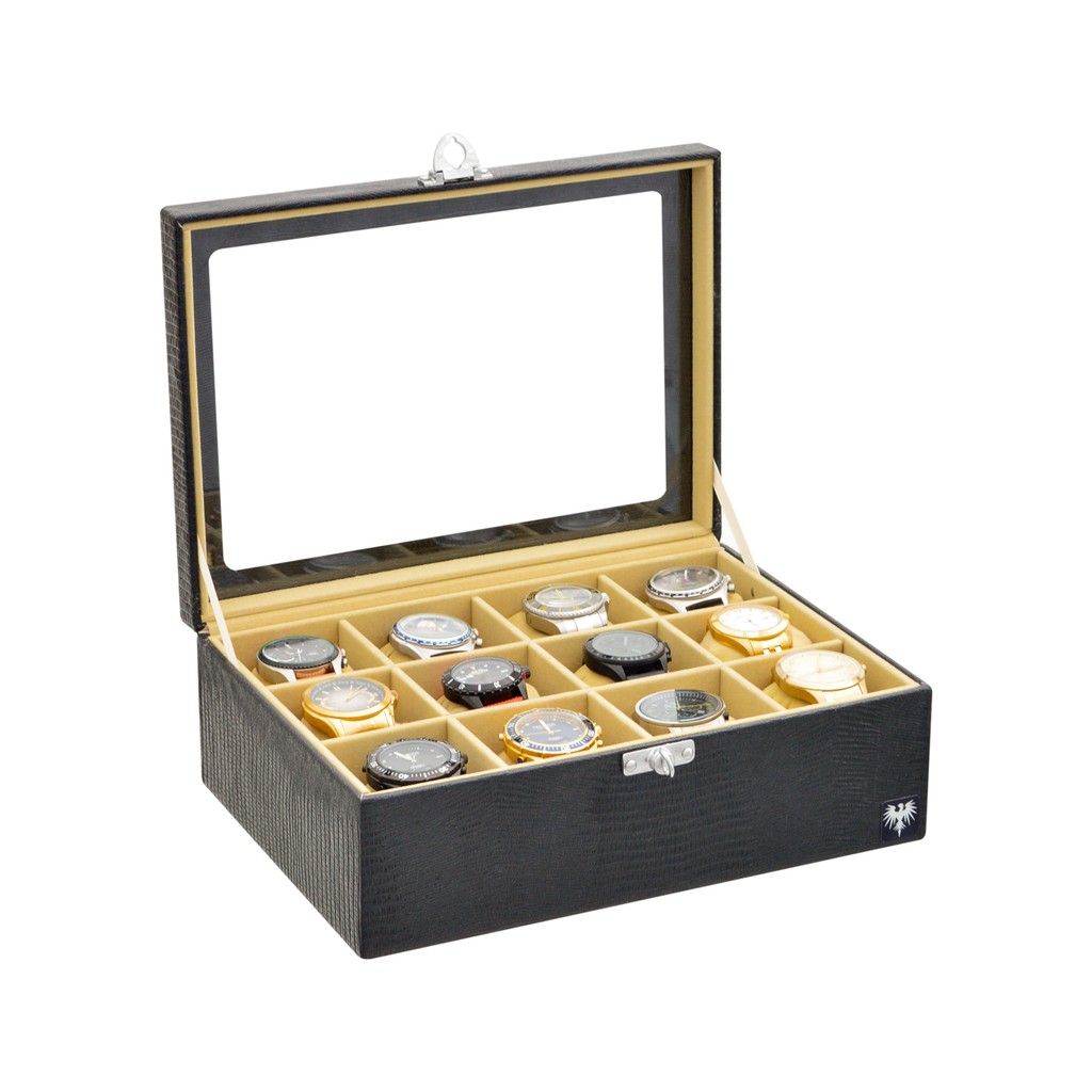 Porta Relógio Total Luxo Estojo Couro Ecológico 12 Nichos