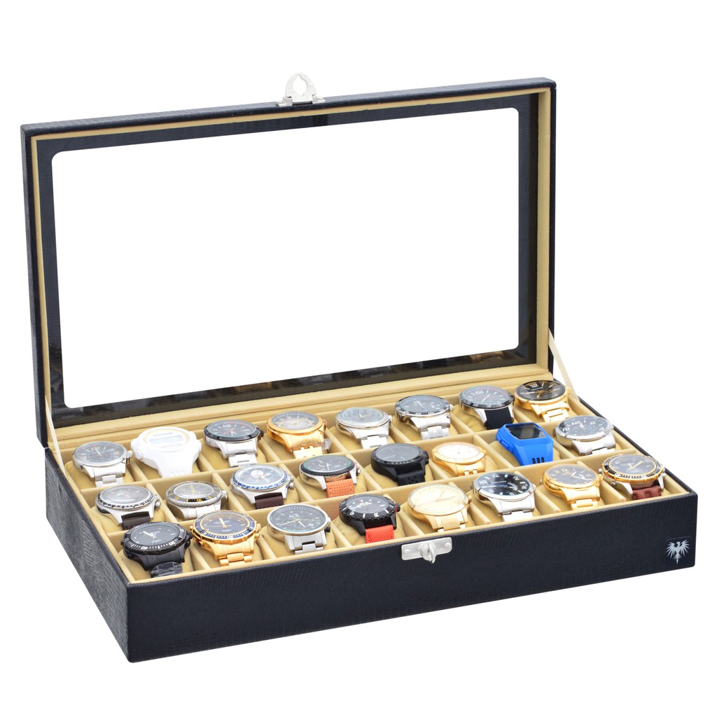 Porta Relógio Total Luxo Estojo Couro Ecológico 24 Nichos