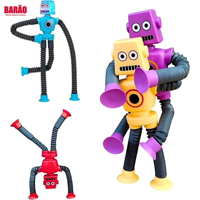 Kit com 4 robôs cartoon pop tube - fidget toy brinquedo sensorial infantil / anti estresse tubo estica e puxa tiktok