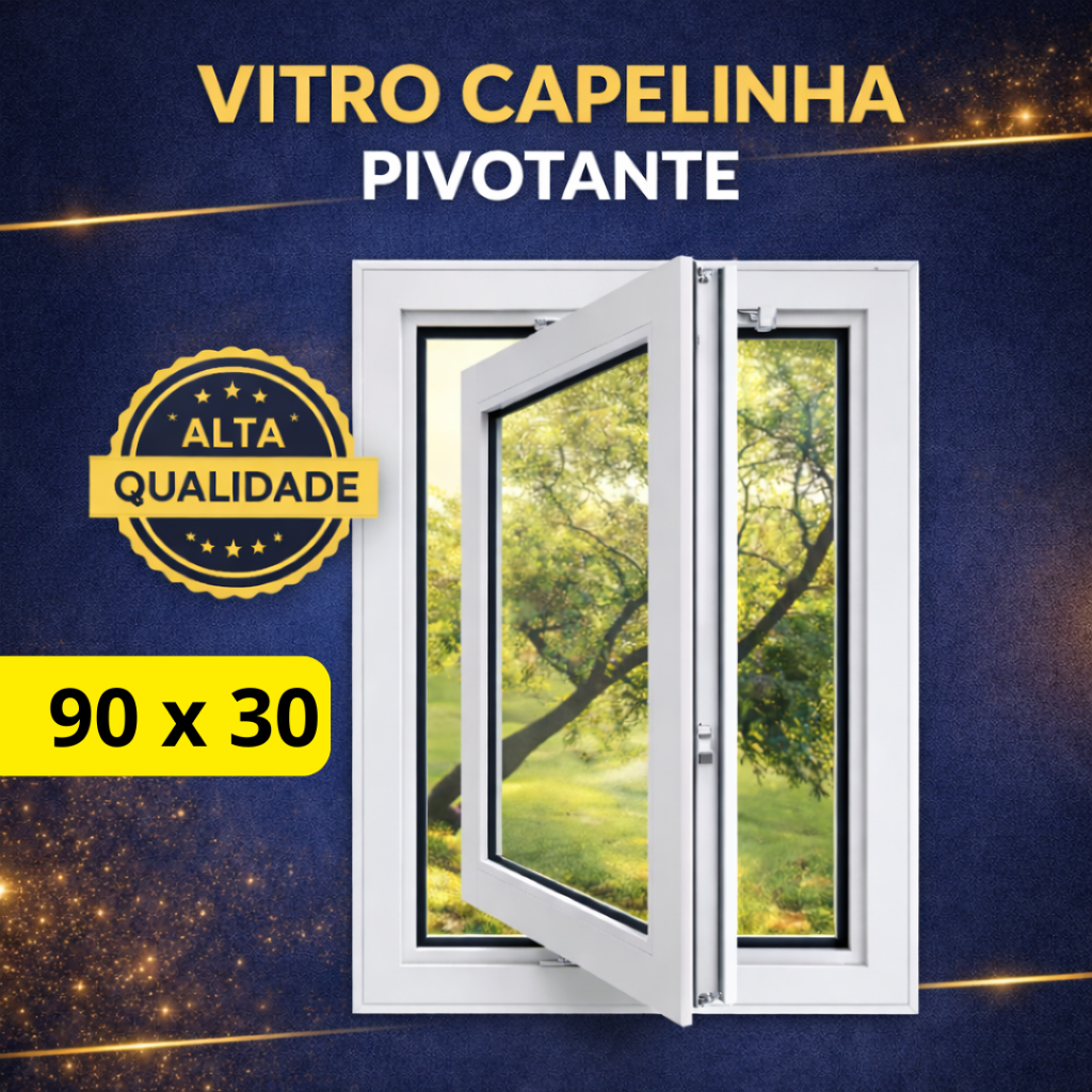 Vitro Capelinha Pivotante 90x30 com Vidro – Alumínio Branco, Janela Sala Completa