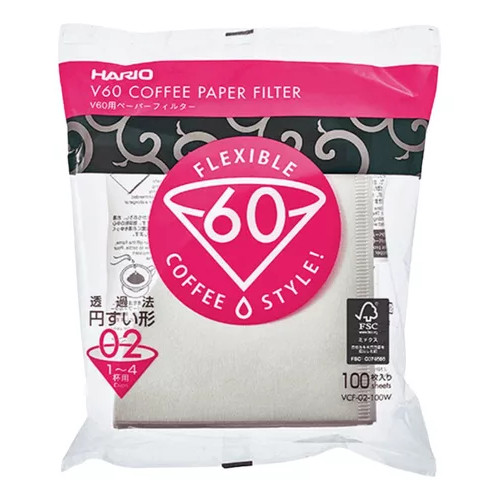 Filtro Coador de Papel Branco para Café - Hário V60-02 - Pacote com 100 unidades