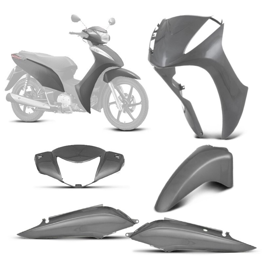 Kit Conjunto Carenagem 5 Peças Plasticas Plastico Pro Tork Roupa Moto Honda Biz 100 1998 1999 2000 2001 2002 2003 2004 2005 Bico Frontal Par de Capa de Bengala Carenagem do Farol Par de Tampas Laterais Paralama Dianteiro