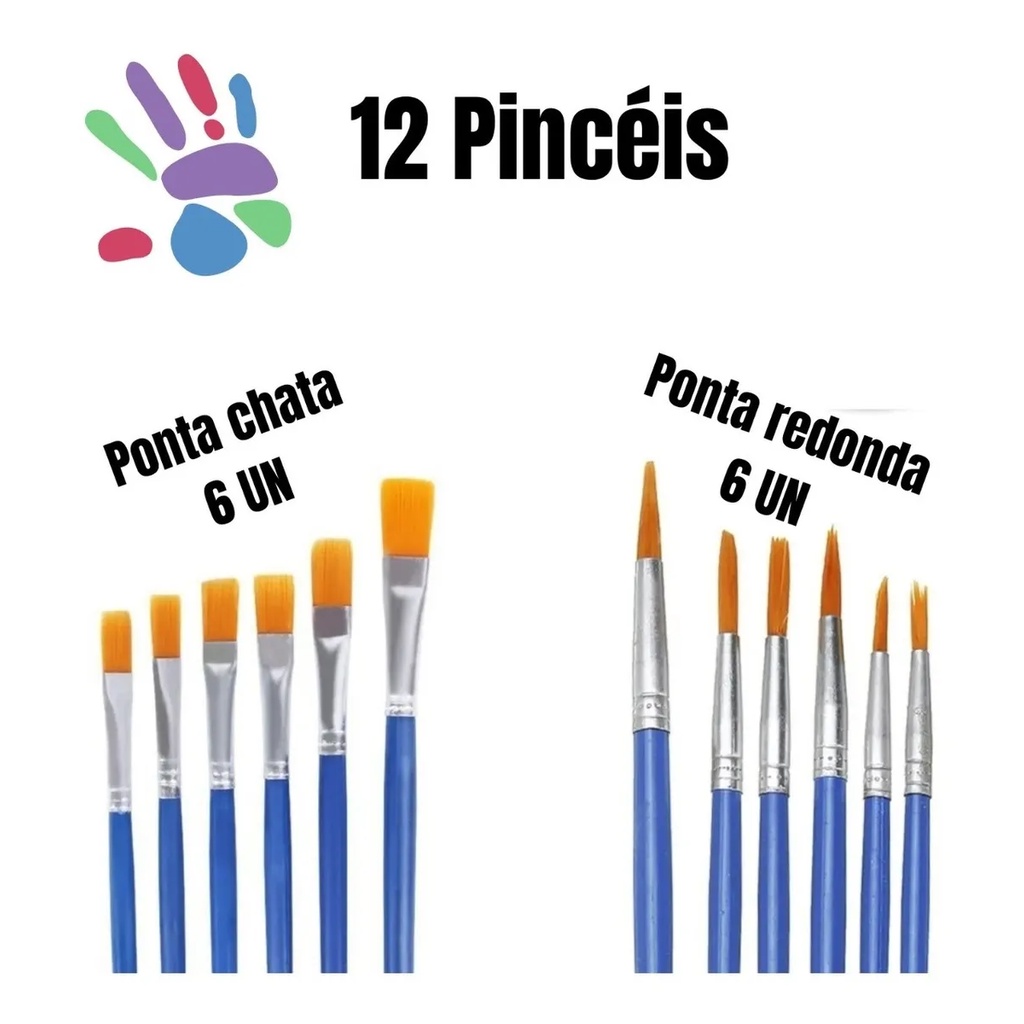 Kit 12 Pincéis Pintura Artesanato Ponta Fina Redonda E Chato
