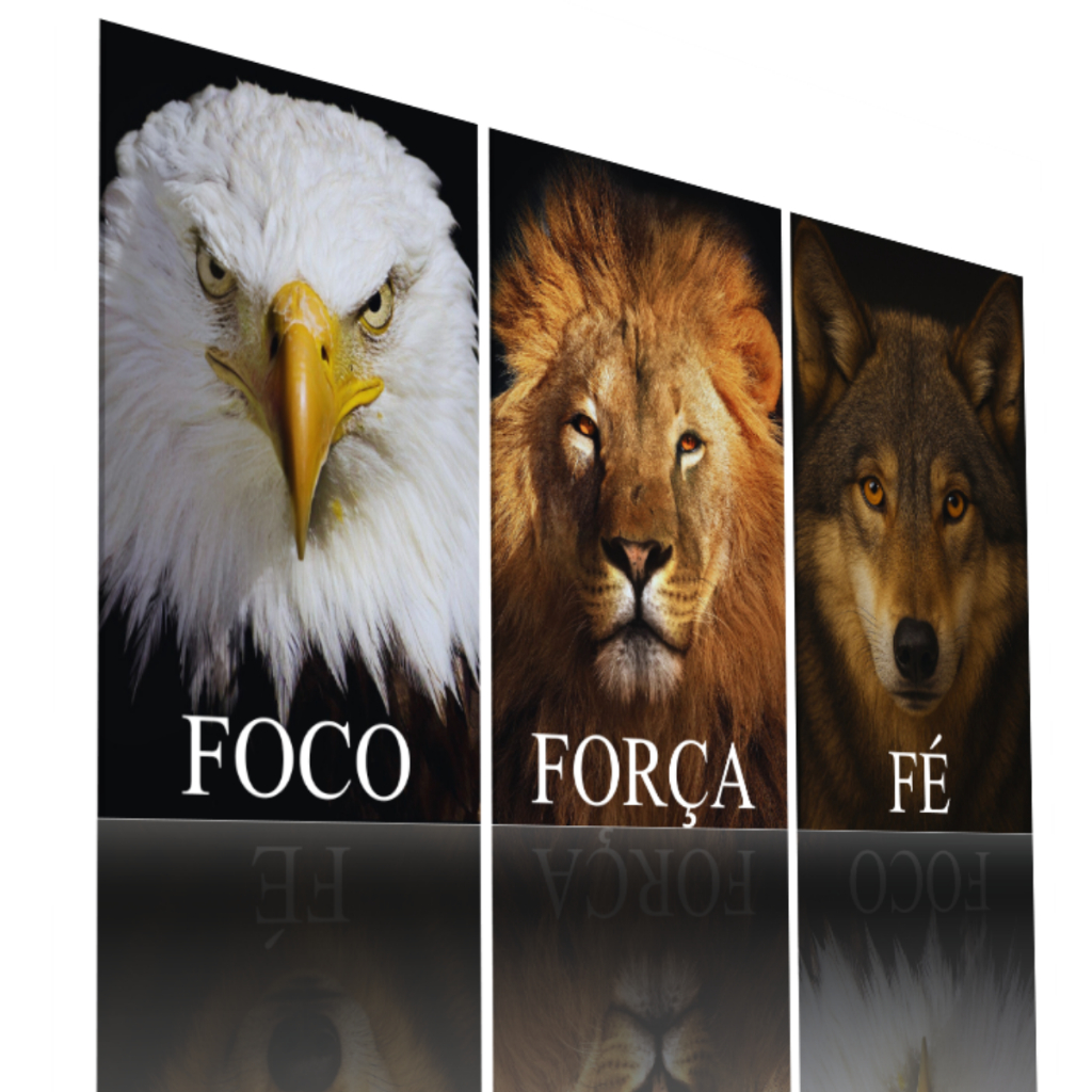 Quadro Decorativo Foco Força Fé Para Sala Quarto Escritório Mosaico 122x60 Motivação Leão Lobo Águia
