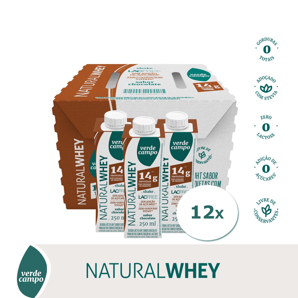 Shake Natural Whey Verde Campo Chocolate 250ml 14g - Pack C/12un