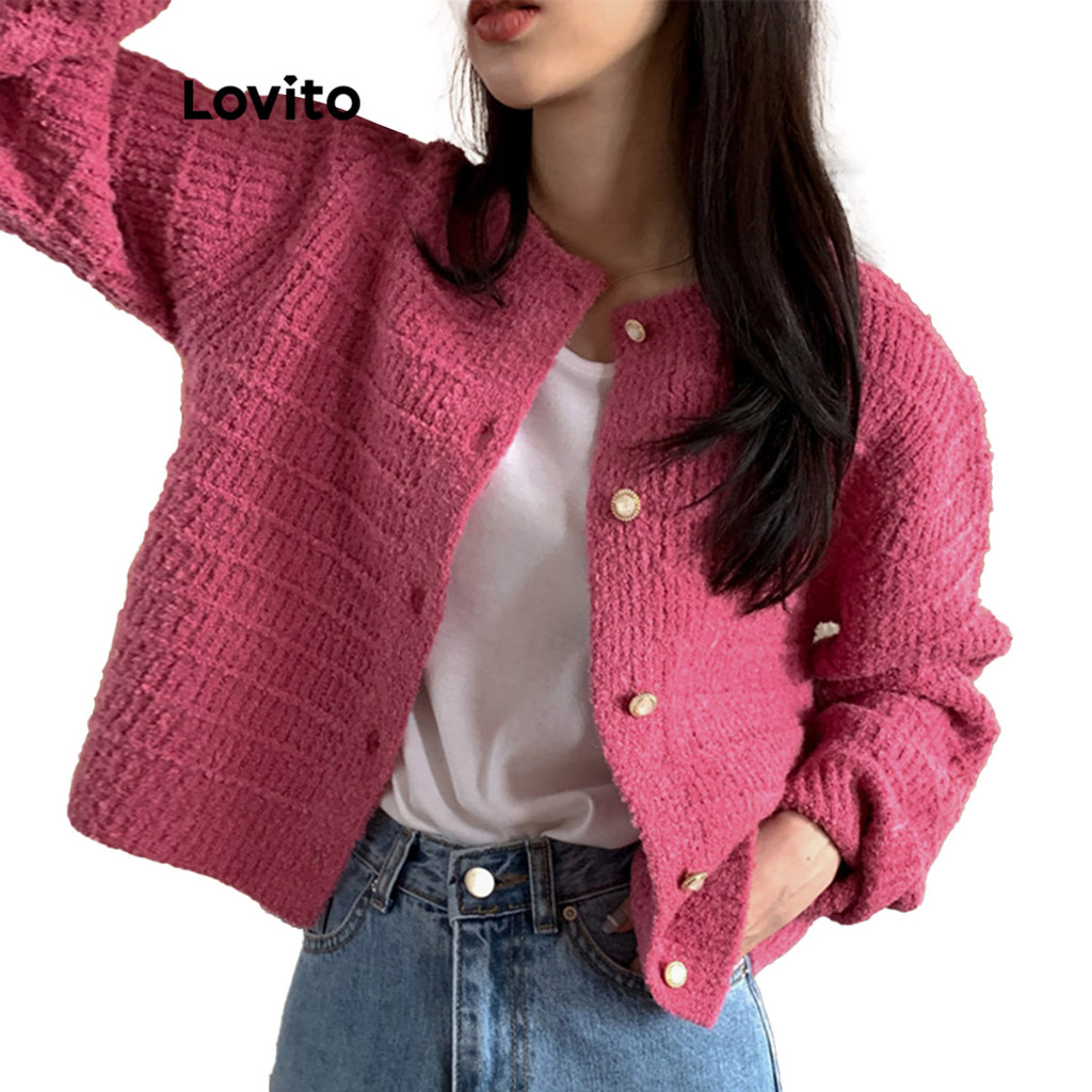 Lovito Cardigans Casuais Com Botão Frontal De Metal Cardigãs De Verão/Primavera Para Mulheres LNE36311