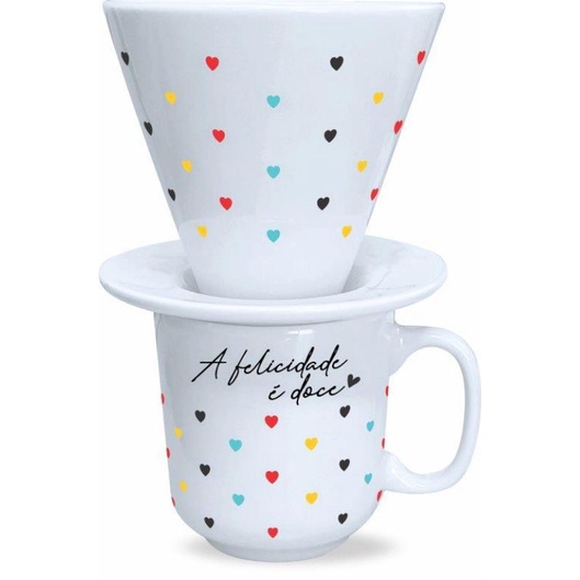 Kit de Caneca com Coador Porcelana Decorada - Xícara de Café