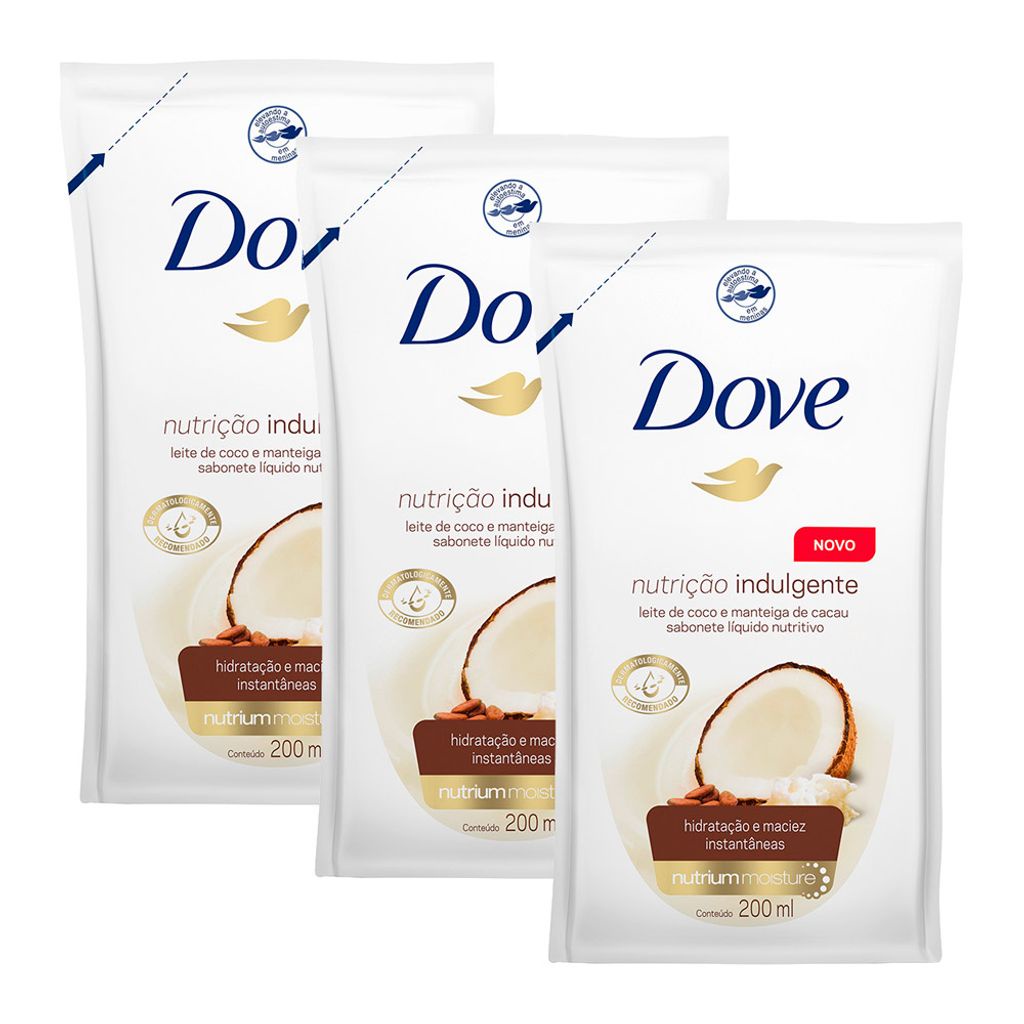 Kit 3 Sabonete Líquido Dove Nutrição Indulgente Leite de Coco e Manteiga de Cacau 200ml