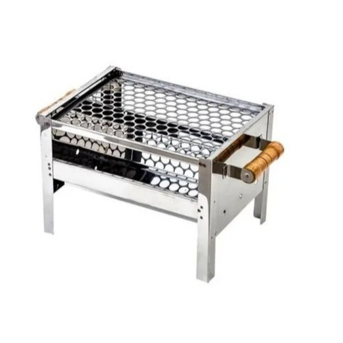 Churrasqueira Compacta Aço Inox com Grelha em Aço Inox Pequena - Pronta Entrega Envio Imediato