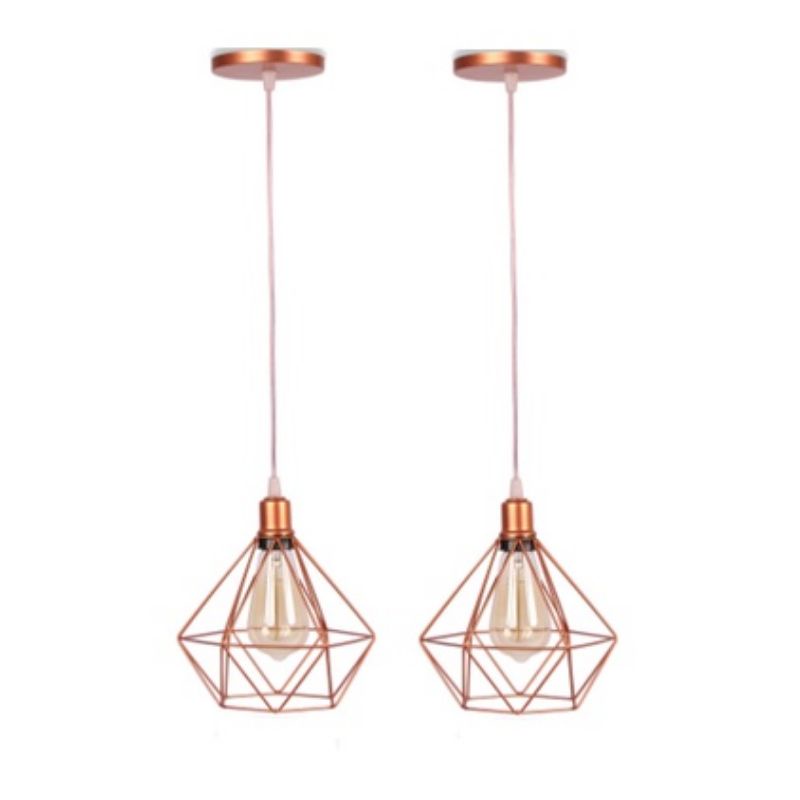 kit 2 Pendentes Diamante Lustre Luminária de Teto Retrô industrial Rose Gold Cabo Cristal