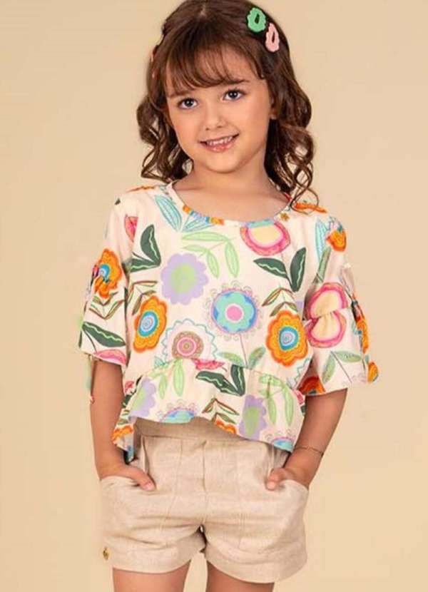 Ok e Pakita - Conjunto com Blusa Soltinha com Abertura nas Costas Pakita Estampado