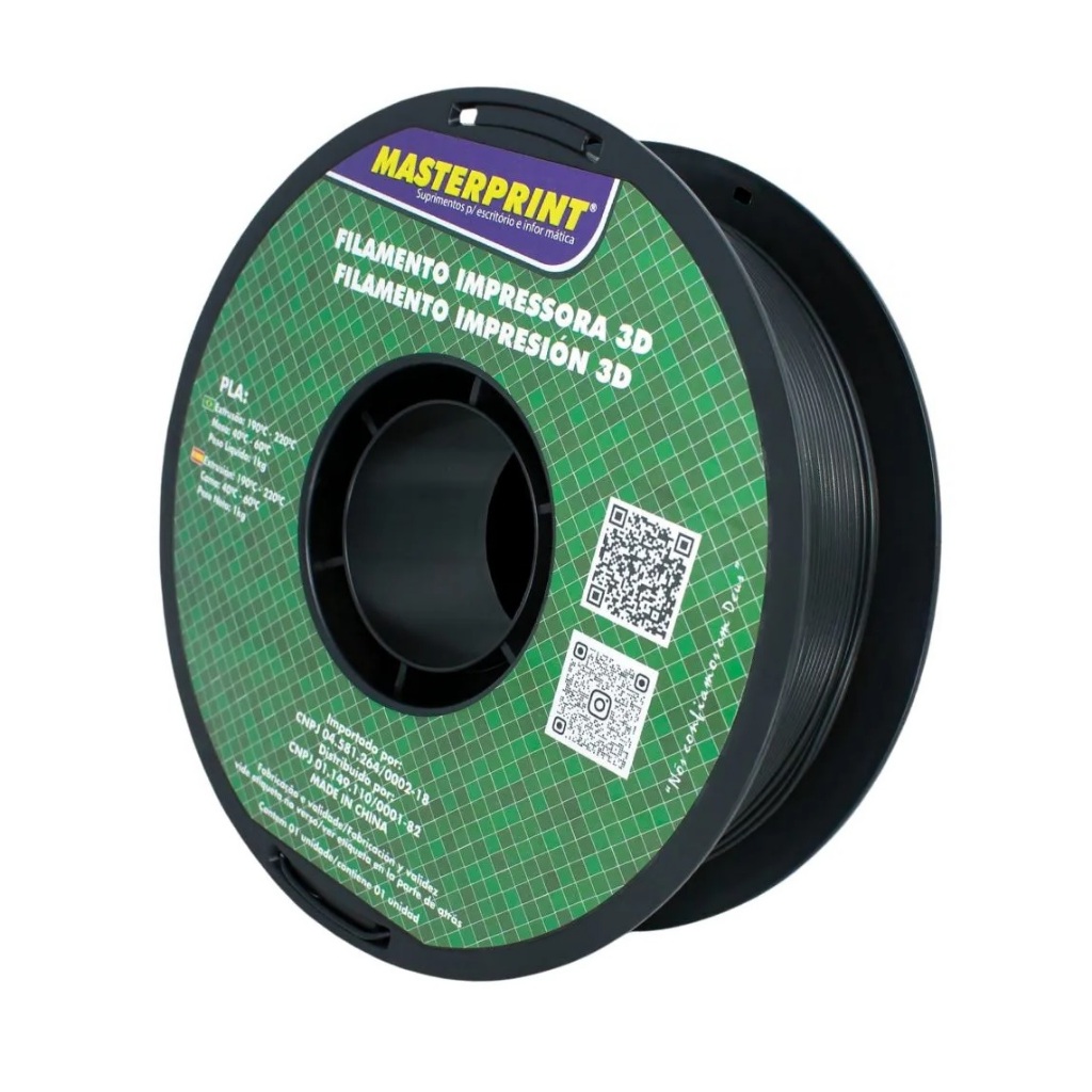 Filamento de Impressora 3D PLA Preto 1.75mm 1KG Fio Flexível Cor Brilha Textura Macia Masterprint
